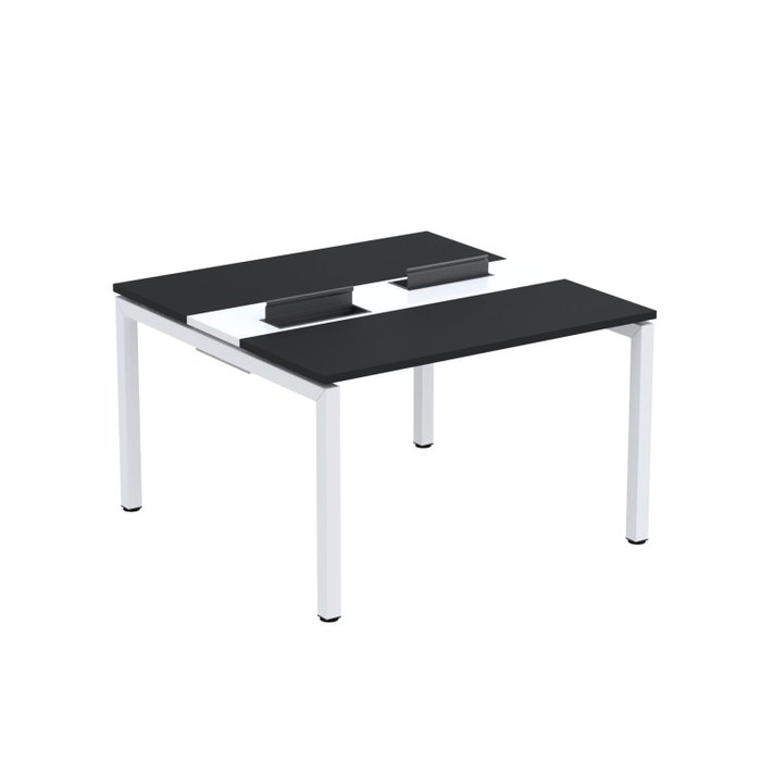 Estação de Trabalho Mesa Plataforma Escritório Dupla para 2 Pessoas com Caixa de Tomada PDC Preto/Branco