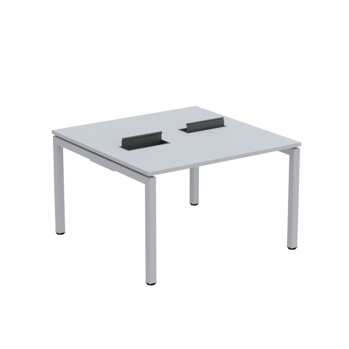 Estação de Trabalho Mesa Plataforma Escritório Dupla para 2 Pessoas com Caixa de Tomada PDC Cinza