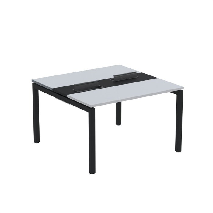Estação de Trabalho Mesa Plataforma Escritório Dupla para 2 Pessoas com Caixa de Tomada PDC Cinza/Preto