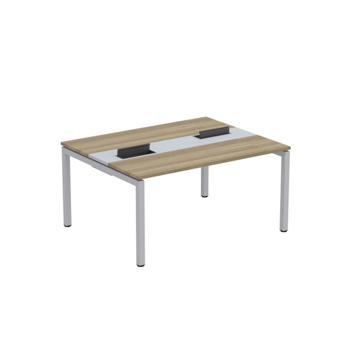 Estação de Trabalho Mesa Plataforma Escritório Dupla para 2 Pessoas com Caixa de Tomada PDC Noce Naturalle/Cinza