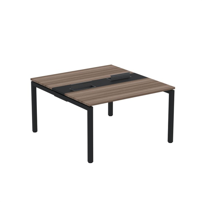 Estação de Trabalho Mesa Plataforma Escritório Dupla para 2 Pessoas com Caixa de Tomada PDC Walnut/Preto