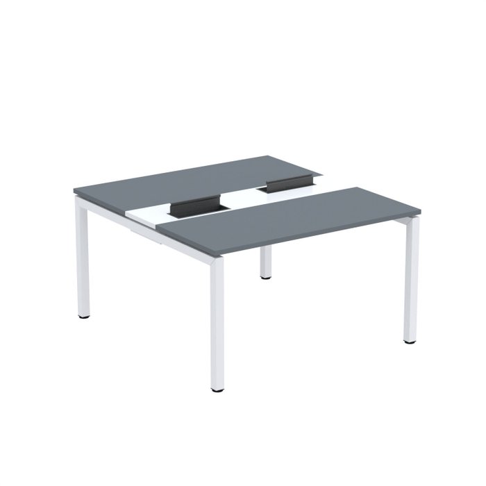 Estação de Trabalho Mesa Plataforma Escritório Dupla para 2 Pessoas com Caixa de Tomada PDC Grafito/Branco