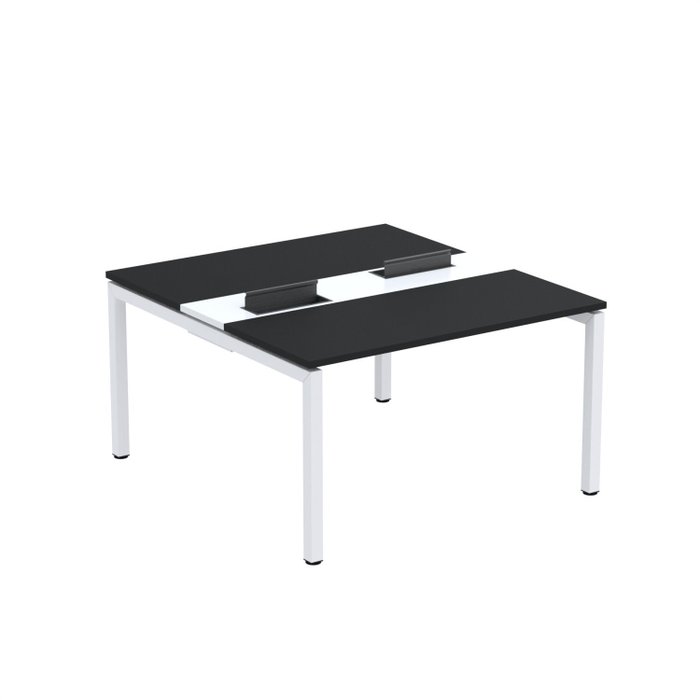 Estação de Trabalho Mesa Plataforma Escritório Dupla para 2 Pessoas com Caixa de Tomada PDC Preto/Branco