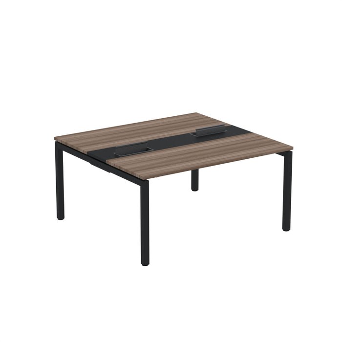 Estação de Trabalho Mesa Plataforma Escritório Dupla para 2 Pessoas com Caixa de Tomada PDC Walnut/Preto