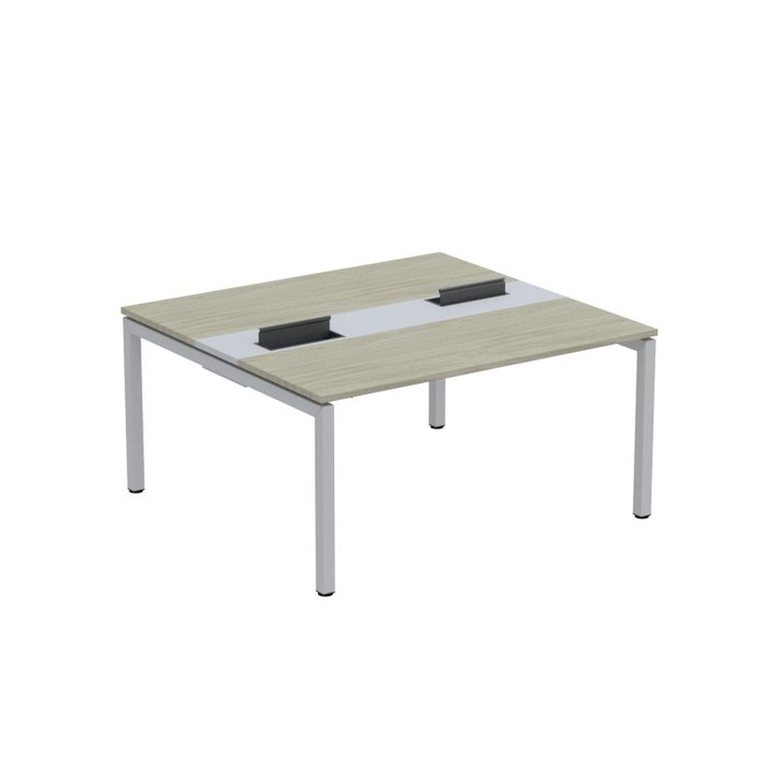 Estação de Trabalho Mesa Plataforma Escritório Dupla para 2 Pessoas com Caixa de Tomada PDC Nogueira Casablanca/Cinza