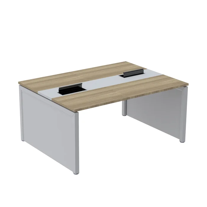 Estação de Trabalho Mesa Plataforma Escritório Dupla para 2 Pessoas com Caixa de Tomada Pé Painel