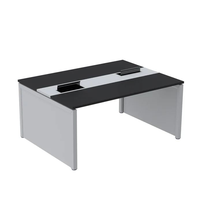 Estação de Trabalho Mesa Plataforma Escritório Dupla para 2 Pessoas com Caixa de Tomada Pé Painel Preto/Cinza