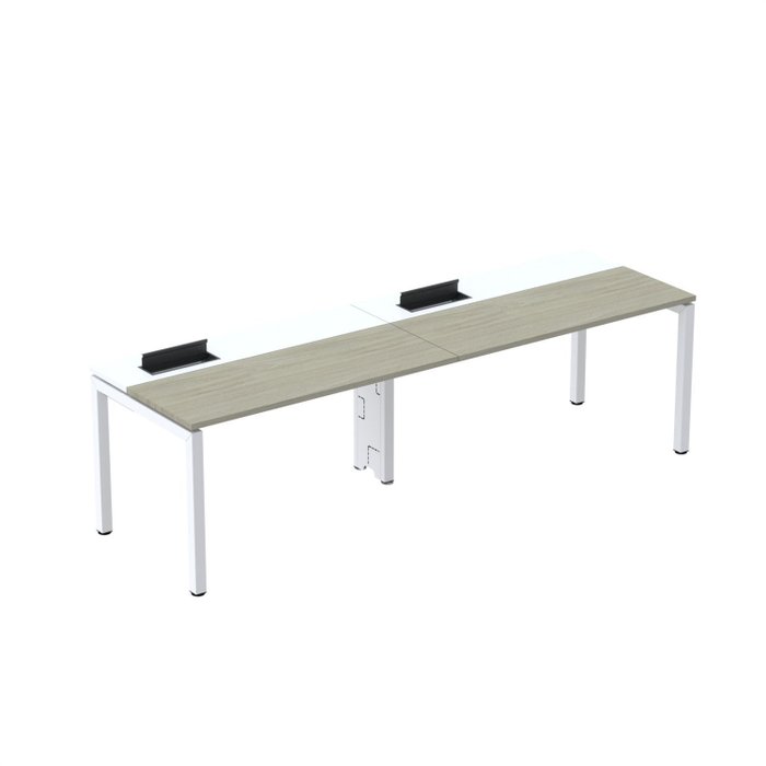 Estação de Trabalho Mesa Plataforma Escritório para 2 Pessoas com Caixa de Tomada PSC Nogueira Casablanca / Branco