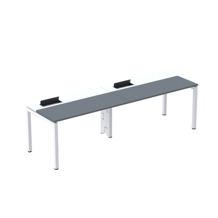 Estação de Trabalho Mesa Plataforma Escritório para 2 Pessoas com Caixa de Tomada PSC Grafito/Branco