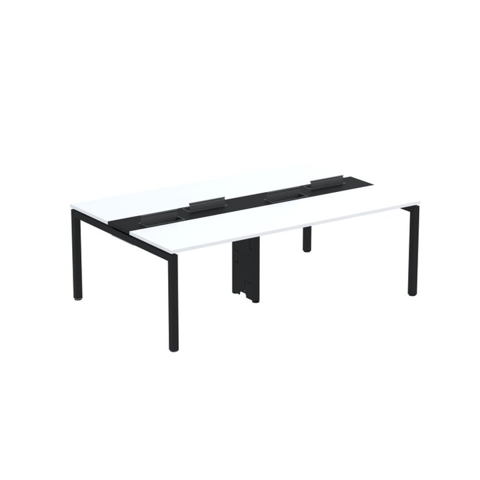 Mesa corporativa para 4 lugares com pé de aço adequado para ambientes de coworking. Esse complemento é projetado para ser utilizado em conjunto com outras mesas, permitindo aumentar o número de lugares disponíveis. Ela combina funcionalidade e estilo, proporcionando um espaço colaborativo confortável para trabalhar. Você pode adicionar essa mesa a outras unidades para criar um ambiente expansível conforme necessário.