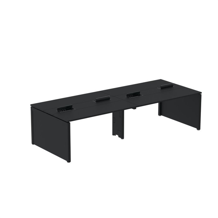 Estação de Trabalho Mesa Plataforma Escritório para 4 Pessoas Dupla com Caixa de Tomada Pé Painel Preto/Preto