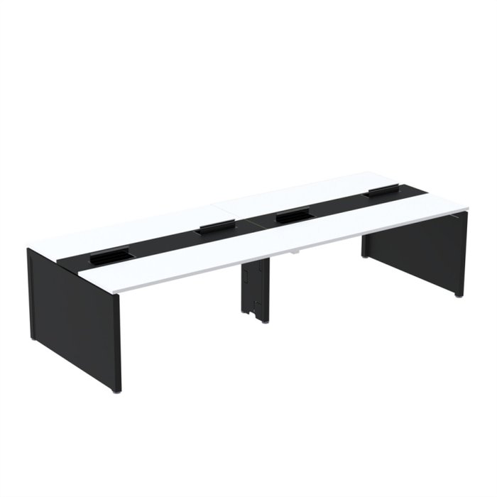 Mesa corporativa para 4 lugares com pé painel adequado para ambientes de coworking. Esse complemento é projetado para ser utilizado em conjunto com outras mesas, permitindo aumentar o número de lugares disponíveis. Ela combina funcionalidade e estilo, proporcionando um espaço colaborativo confortável para trabalhar. Você pode adicionar essa mesa a outras unidades para criar um ambiente expansível conforme necessário.