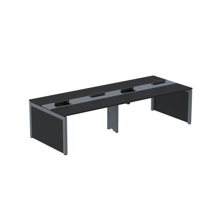 Estação de Trabalho Mesa Plataforma Escritório para 4 Pessoas Dupla com Caixa de Tomada Pé Painel Preto/Grafito