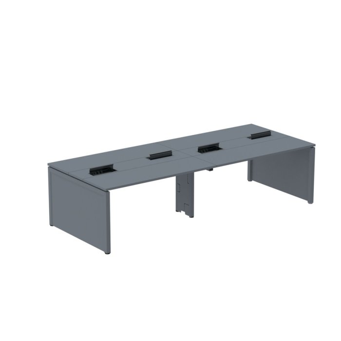 Estação de Trabalho Mesa Plataforma Escritório para 4 Pessoas Dupla com Caixa de Tomada Pé Painel Grafito