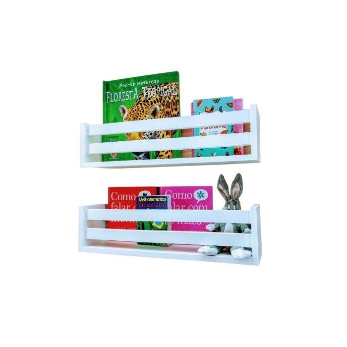 Estande de Livro Infantil Livreiro Organizador de Parede Nicho Mdf Branco Porta Brinquedos Kit 2 Un