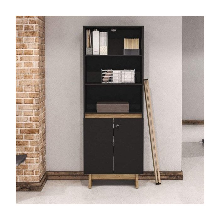 Estante 2 Portas 3 Prateleiras Los Angeles Preto/Carvalho Claro