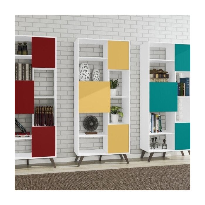 Estante 3 Portas e Prateleiras Rt3039 Retrô Movelbento Branco/Amarelo