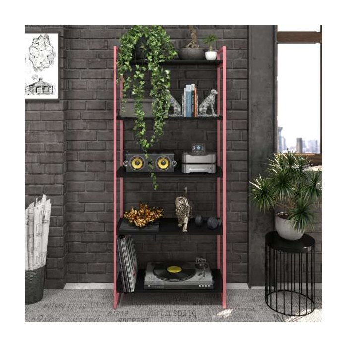 Estante 5 Prateleiras Multiuso Etrange Industrial 190x80cm Preto com Rosa Metal