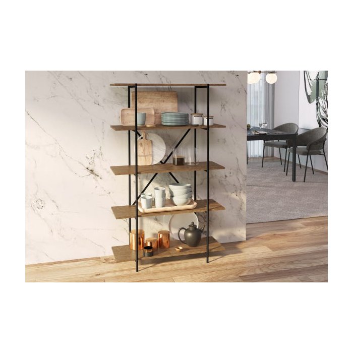 Estante 90cm 5 Prateleiras Estrutura Metálica 27874 Tube Artesano - Vermont/preto Fosco