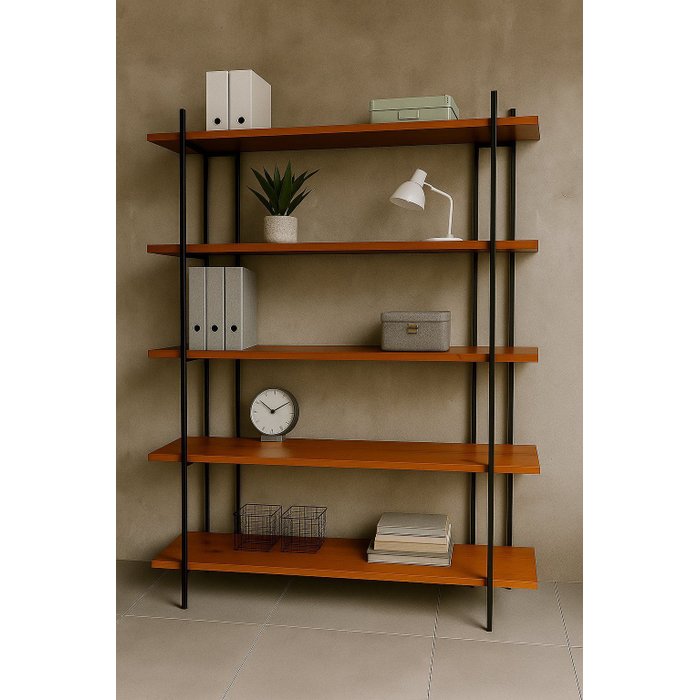 Com 5 prateleiras em madeira maciça, essa estante une beleza, resistência e praticidade. A estrutura em metalon traz um charme industrial moderno, ideal para compor salas, quartos, escritórios ou até ambientes comerciais.Seja para organizar livros, expor objetos decorativos ou plantas, ela se adapta ao seu estilo com elegância e funcionalidade.
