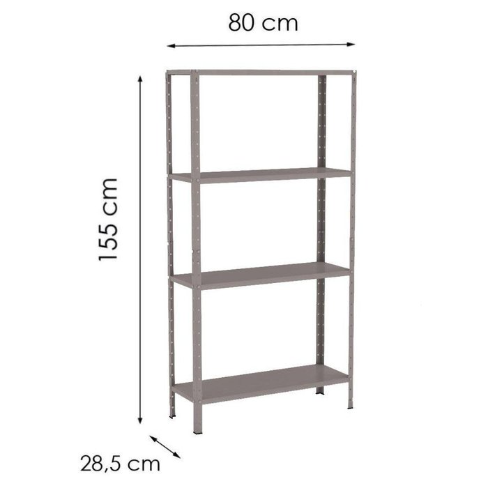 Ela é composta por 04 prateleiras reguláveis. Super resistente, suporta até 30Kg bem distribuídos por prateleira. Possui sapatas plásticas para um perfeito acabamento e evitando assim riscos no piso.