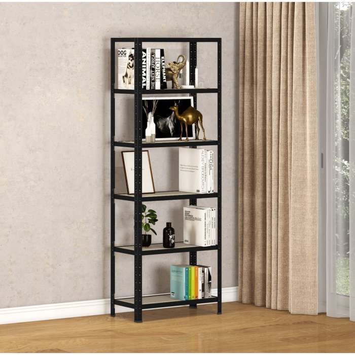 Estante Aço 6 Prateleira em Madeira Pandin Móveis Preto/Vanilla
