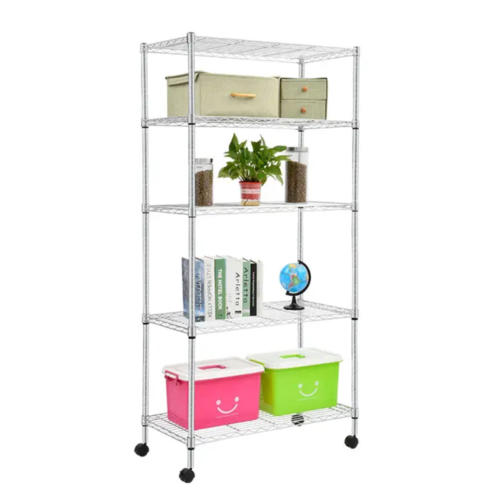 Estante Aramada em Aço Cromado com 5 Prateleiras Ajustáveis e Rodízios