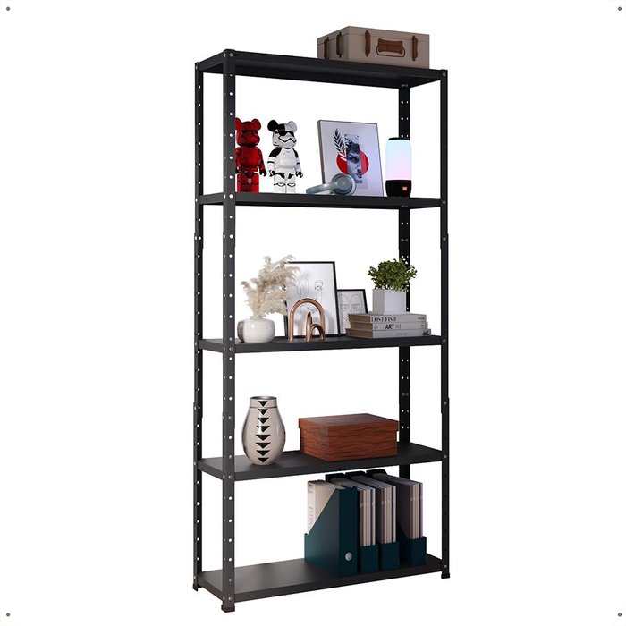 Estante Armário Aço 5 Bandeja Multiuso Expositor Loja Organizador Lavanderia Prateleira Livros Preto Preto