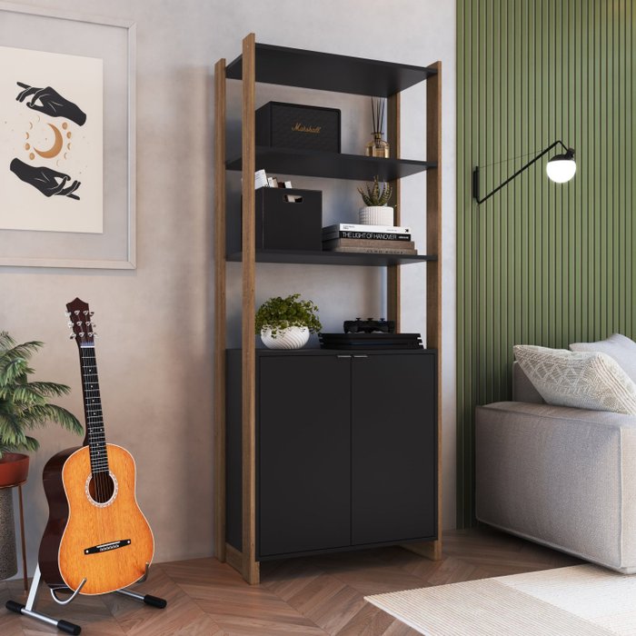 Estante Armário Multiuso 2 Portas e 4 Prateleiras Mel / Preto