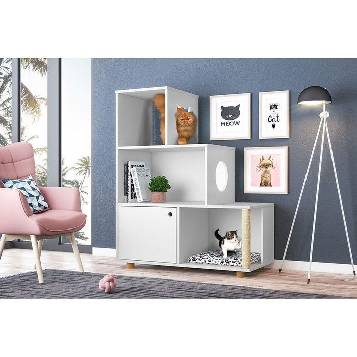 Estante Arranhador Pet Siamês Branco Ac/branco Ac - Cor: Branco Branco