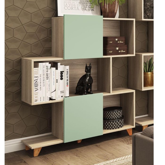Estante Aurora com 2 Portas - Natural/Verde Natural
