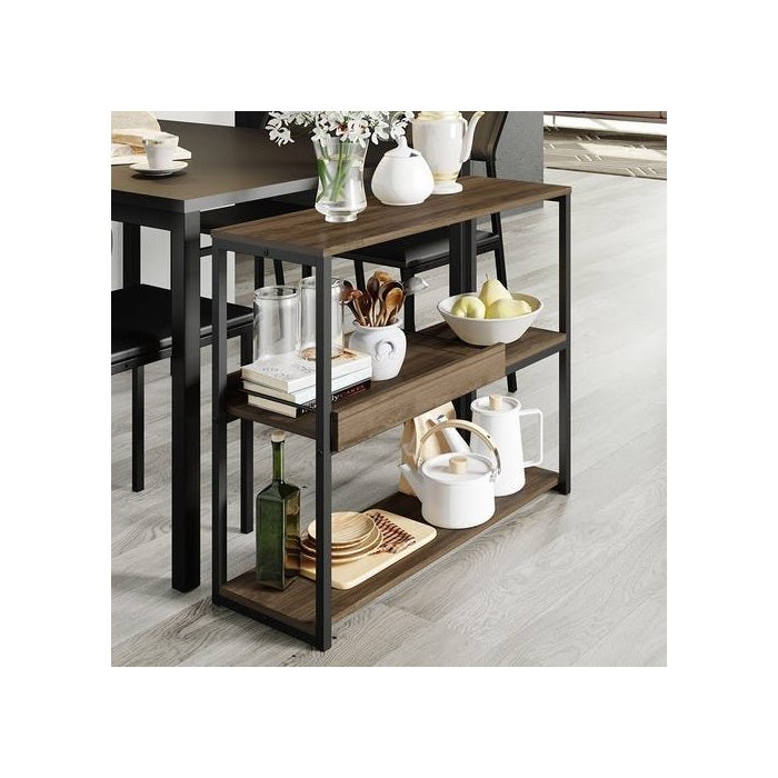 Estante Baixa Em Aço E Madeira - Design Industrial:Marrom-escuro - Legno