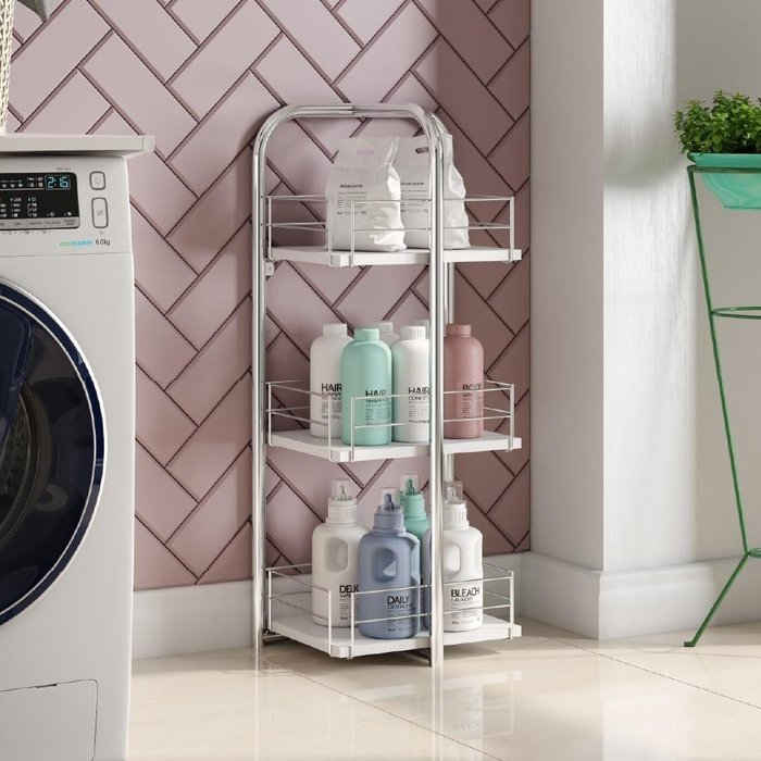 Estante Baixa Lavanderia Aramada 3 Prateleiras Branco Tubos Cromados Carraro