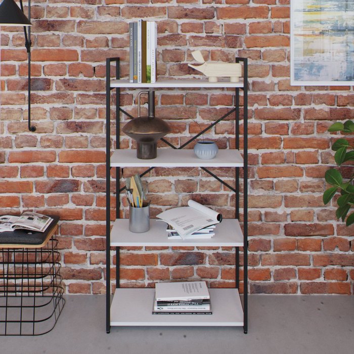 Estante com 4 Prateleiras 118x60x33cm Yon Branco/Preto