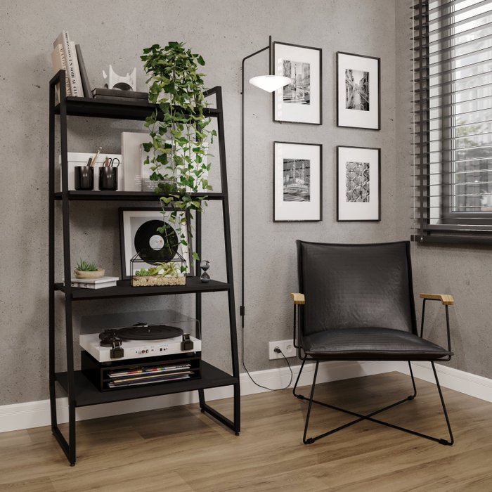 Estante com 4 Prateleiras 149,3x70x44,5cm Concept CabeCasa MadeiraOriginals Preto Trama