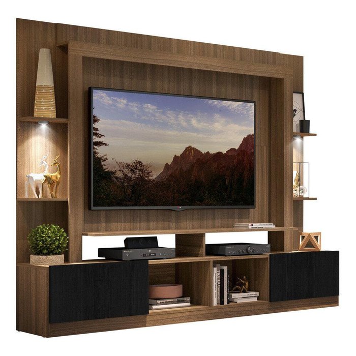 Estante com Suporte Tv 65" e Leds Berlim Multimóveis V3384 Madeirada/Preta
