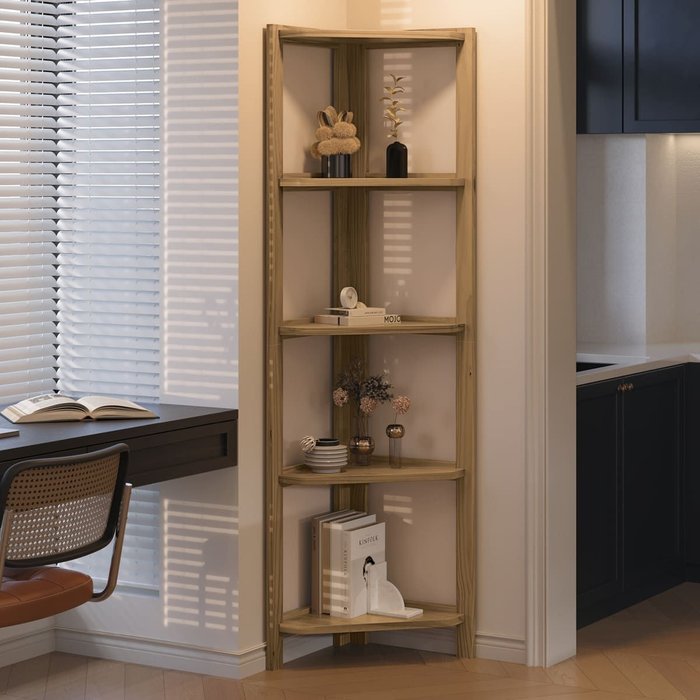 Com 5 prateleiras espaçosas, oferece praticidade para organizar livros, objetos decorativos, plantas, fotos ou o que mais você quiser expor com charme. Seu acabamento refinado valoriza os veios naturais da madeira, trazendo um toque rústico e sofisticado ao ambiente.