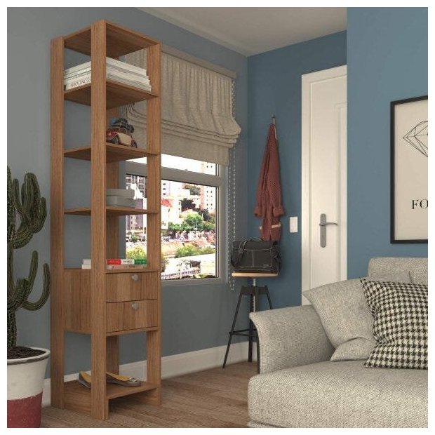 Estante de Livros 40cmx200cm 2 Gavetas 4 Prateleiras Marrom