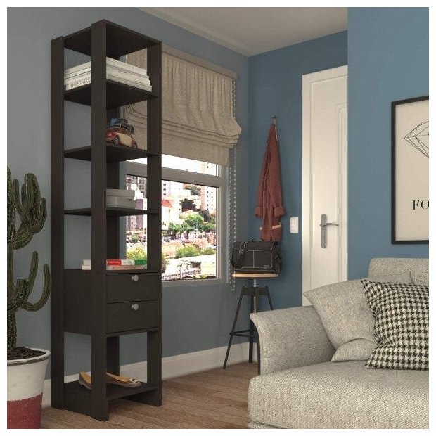 Estante de Livros 40cmx200cm 2 Gavetas 4 Prateleiras Preto