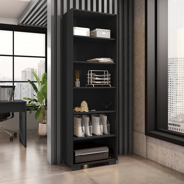 Estante de Livros 60,5cmx188cm 5 Prateleiras Office Preto Tx