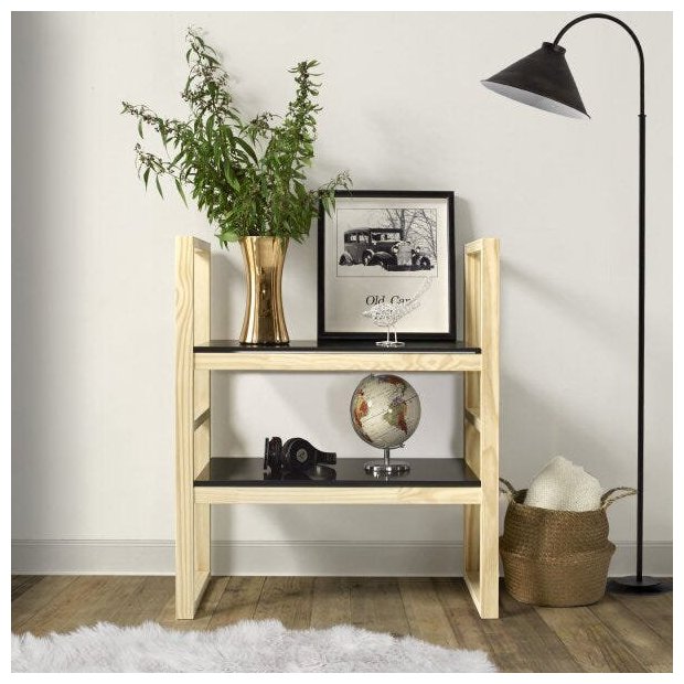 Estante de Livros 80cmx97cm Pés em Madeira Maciça 2 Prateleiras de Madeira Maciça Guará YesCasa Preto/Natural