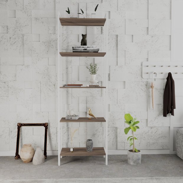 Estante de Livros Industrial 60cmx187cm Multiuso 5 Prateleiras Active YesCasa Nogal/Branco
