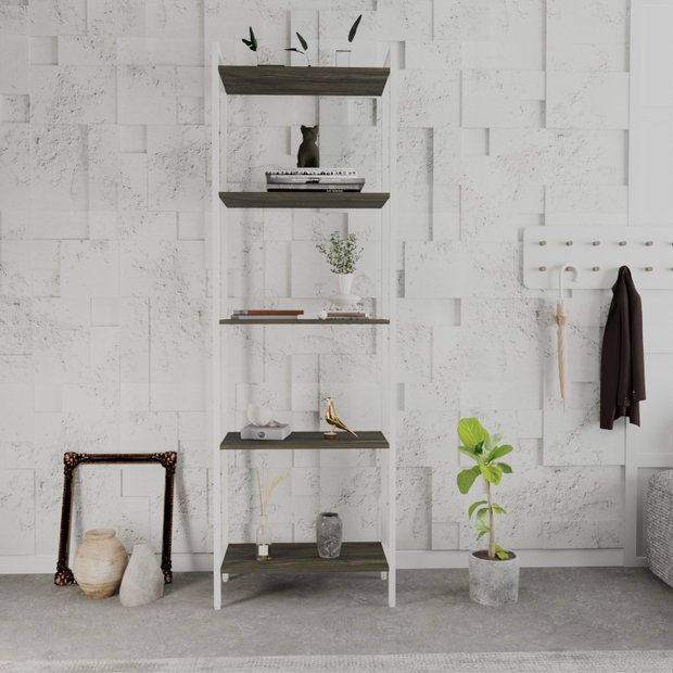 Estante de Livros Industrial 60cmx187cm Multiuso 5 Prateleiras Active YesCasa Carvalho Dark/Branco Chess