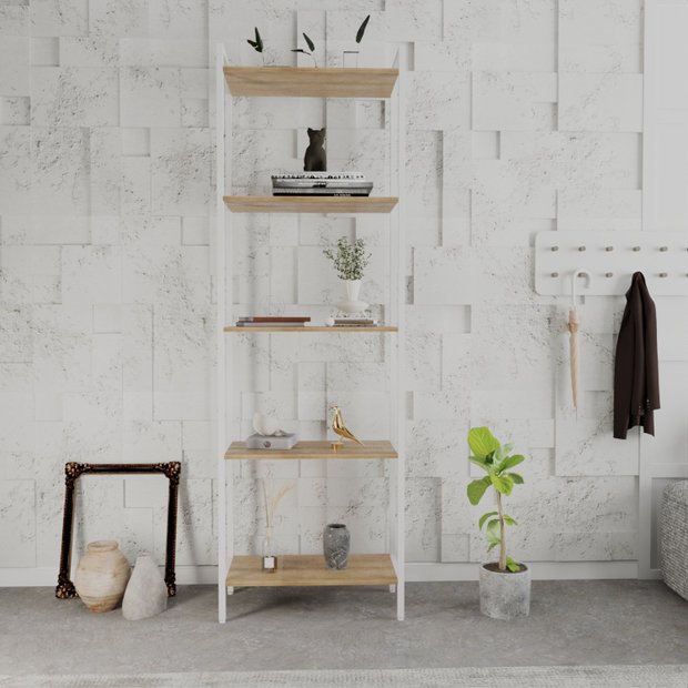 Estante de Livros Industrial 60cmx187cm Multiuso 5 Prateleiras Active YesCasa Lamina Mel/Branco
