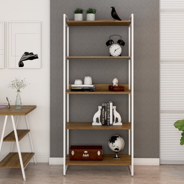 Estante de Livros Industrial Aço 80cmx187cm 5 Prateleiras Kuadra Lamina Mel/Branco