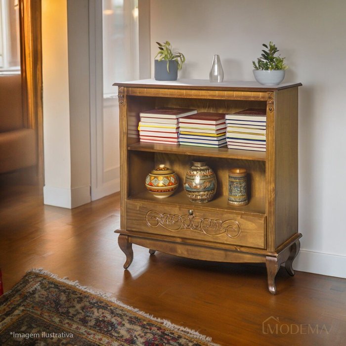 Estante de Madeira com 01 Gaveta e 01 Prateleira Pés Luiz Xv 5130 Genebra - Pinhão