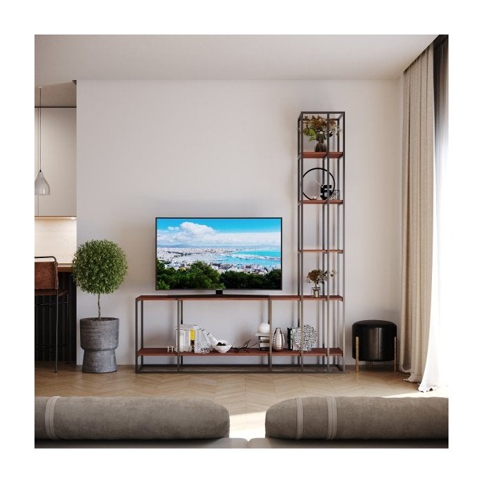 Estante De Madeira e Metalon Para Sala De Estar Waves - Steel - 1,50x0,40x2,00 m