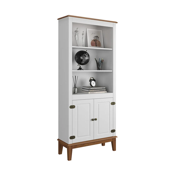 Estante de Madeira Maciça 2 Portas - Branco Branco