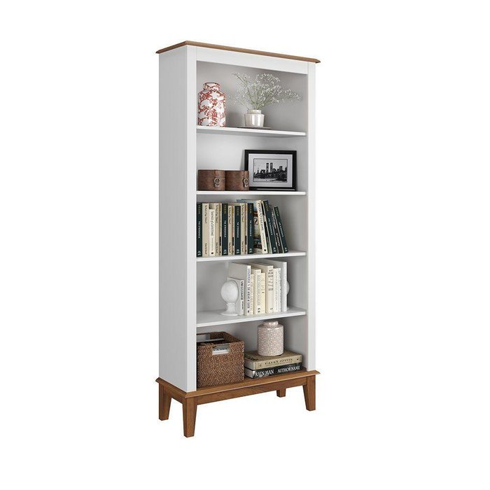 Estante de Madeira Maciça 4 Prateleiras - Branco - Fundo Branco