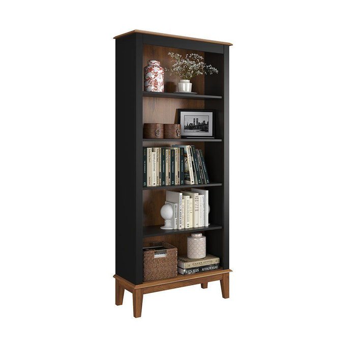 Estante de Madeira Maciça 4 Prateleiras Preto - Fundo Amêndoa Preto - Fundo Amêndoa